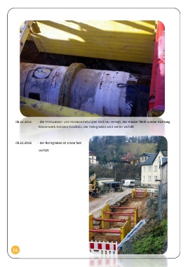 06.12.2016 - die Trinkwasser- und Abwasserleitungen sind neu verlegt, das Wasser fließt wieder Richtung Wasserwerk Dresden-Coschütz, der Rohrgraben wird weiter verfüllt 09.12.2016 - der Rohrgraben ist schon fast verfüllt 16