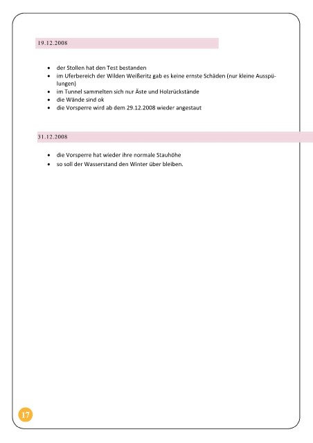 • die Vorsperre wird ab dem 29.12.2008 wieder angestaut