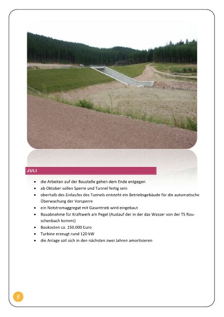 • Bauabnahme für Kraftwerk am Pegel (Auslauf der in der das Wasser von der TS Rau-