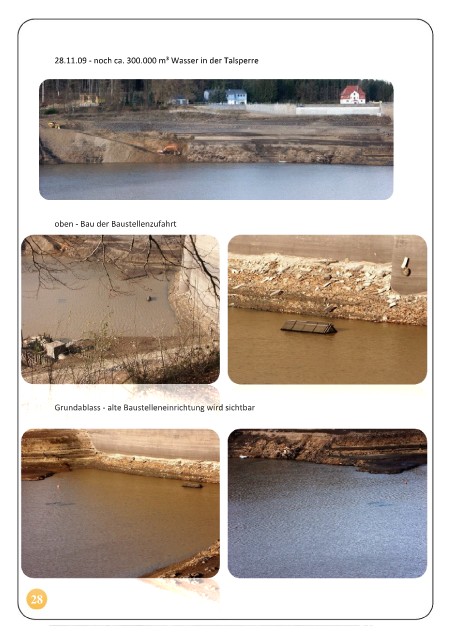 28.11.09 - noch ca. 300.000 m³ Wasser in der Talsperre oben - Bau der Baustellenzufahrt Grundablass - alte Baustelleneinrichtung wird sichtbar 28