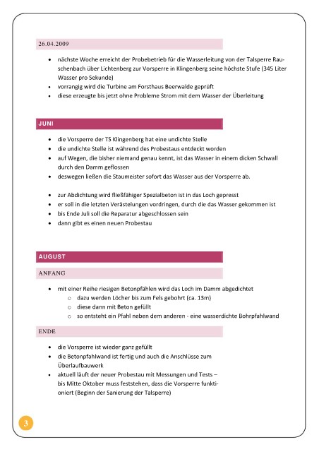 • nächste Woche erreicht der Probebetrieb für die Wasserleitung von der Talsperre Rau-