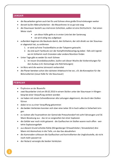 • zwei Bauarbeiter sind am 09.02.2010 in einem Stollen unter der Staumauer in Klingen-