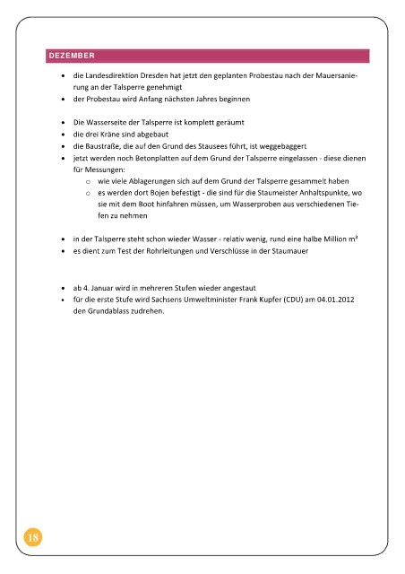 •  der Probestau wird Anfang nächsten Jahres beginnen