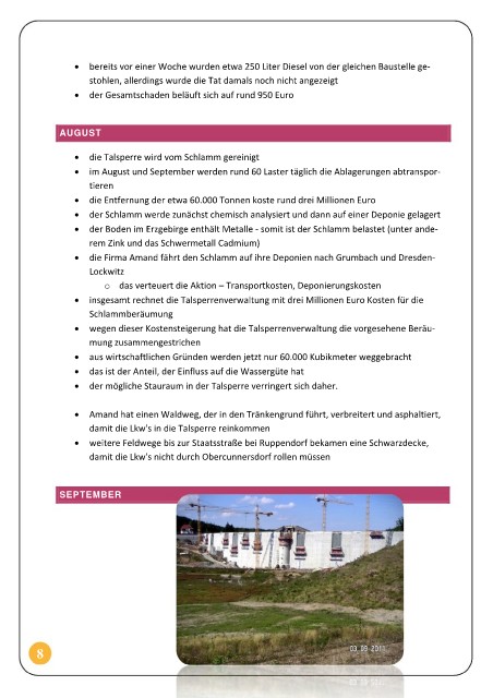 • im August und September werden rund 60 Laster täglich die Ablagerungen abtranspor-
