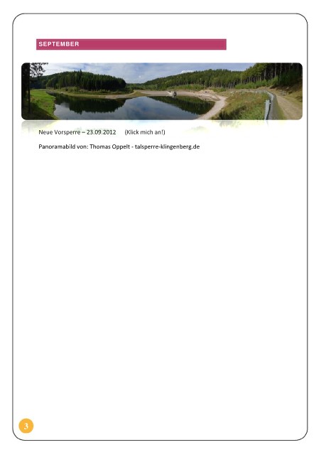 SEPTEMBER Neue Vorsperre – 23.09.2012 (Klick mich an!) Panoramabild von: Thomas Oppelt - talsperre-klingenberg.de 3