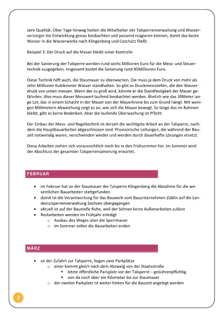 • im Februar hat an der Staumauer der Talsperre Klingenberg die Abnahme für die we-