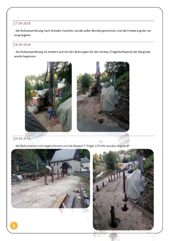 - die Rohwasserleitung ist entleert und mit den Bohrungen für den Verbau (Trägerbohlwand) der Baugrube